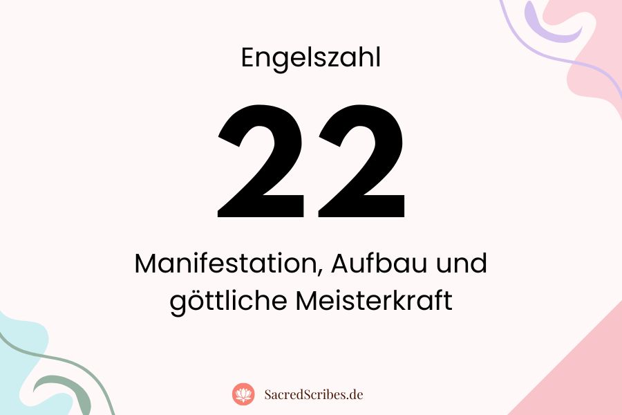 Die Engelszahl 22 steht für Manifestation, Stabilität, Verantwortung und göttliche Meisterschaft. Sie erinnert dich daran, dass du das Potenzial hast, Großes zu erschaffen, wenn du Vision und Handlung miteinander verbindest.