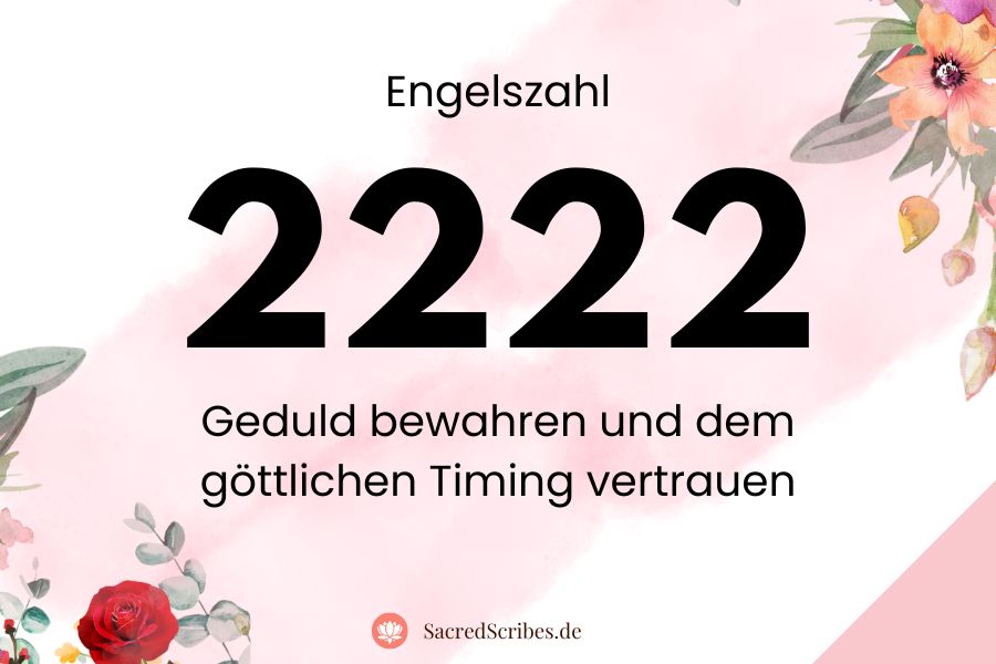 Die Quersumme von 2222 ergibt 8, eine Zahl, die mit innerer Stärke, Ausgleich, Verantwortung und nachhaltiger Fülle verbunden ist. Diese Kombination zeigt, dass Geduld und Vertrauen letztlich zu Stabilität und Klarheit führen.