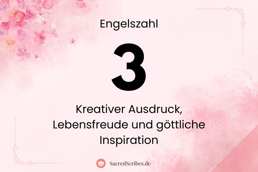 Die Engelszahl 3 steht für Kreativität, Selbstausdruck, Freude und göttliche Begleitung. Sie erinnert dich daran, dass deine Stimme wichtig ist und dass dein Ausdruck eine schöpferische Kraft besitzt.