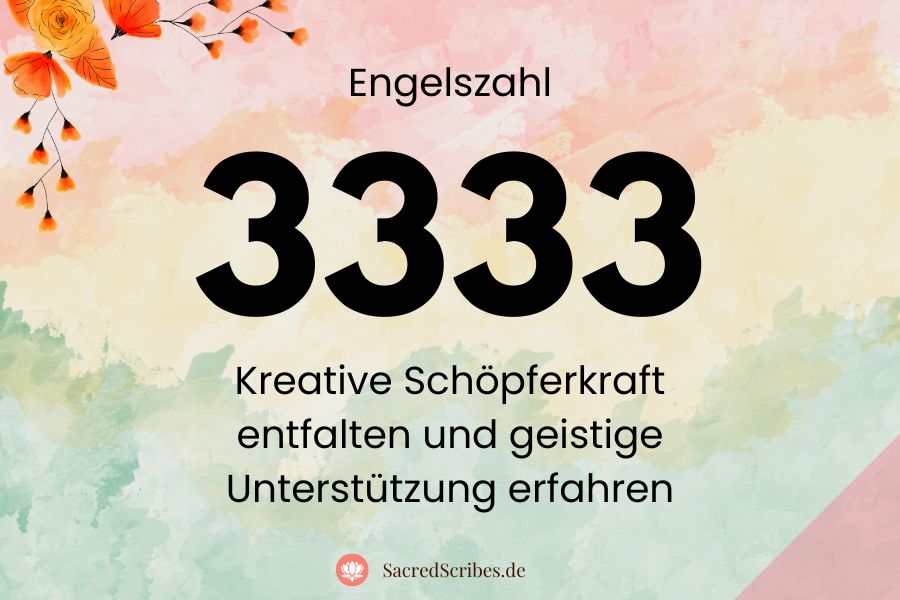 Die Engelszahl 3333 steht für göttliche Unterstützung, schöpferische Kraft, Selbstausdruck und spirituelles Wachstum. Sie erinnert dich daran, dass du begleitet wirst und dass deine innere Wahrheit Bedeutung hat.
