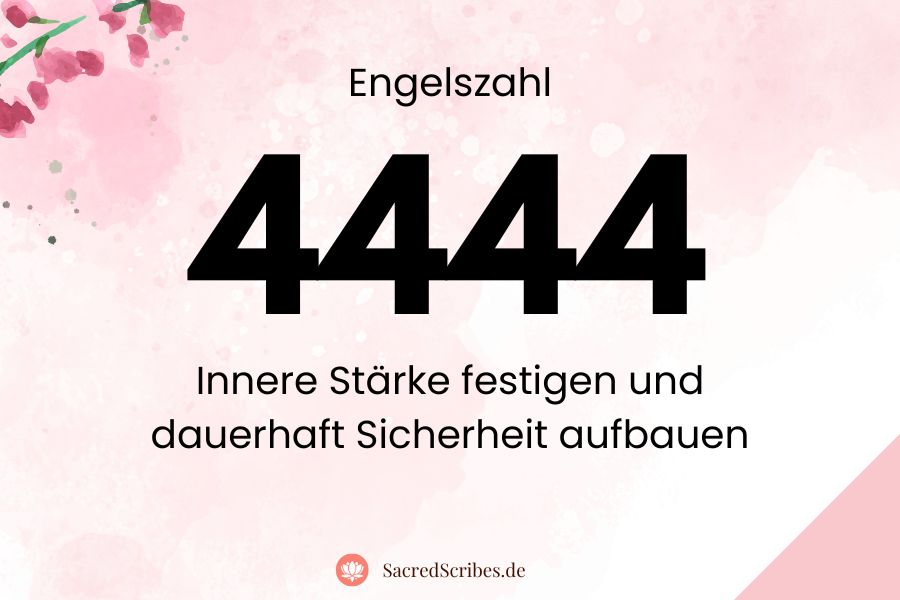 Die Engelszahl 4444 steht für Stabilität, Schutz, innere Stärke und ein dauerhaftes Fundament. Sie erinnert dich daran, dass du getragen wirst und dass deine Bemühungen nicht vergeblich sind.