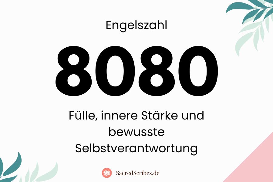 Die Engelszahl 8080 ist eine kraftvolle und zugleich ausgleichende Zahlenbotschaft aus der geistigen Welt. Wenn dir diese Zahl wiederholt begegnet – auf der Uhr, in Rechnungen, Kontobewegungen, Nummernschildern oder anderen alltäglichen Situationen – möchten die Engel deine Aufmerksamkeit auf ein zentrales Lebensthema lenken: innere Stärke, Selbstverantwortung und wahre Fülle. Die Engelszahl 8080 erscheint häufig dann, wenn materielle Themen, Macht, Erfolg oder Sicherheit eine große Rolle spielen und neu ausbalanciert werden wollen.