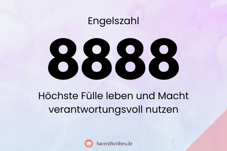 Wenn dir die Engelszahl 8888 häufig begegnet, möchten die Engel deine Aufmerksamkeit auf deine innere Reife und Verantwortung lenken. Sie zeigen dir, dass du in der Lage bist, große Dinge zu tragen, ohne dich selbst zu verlieren.